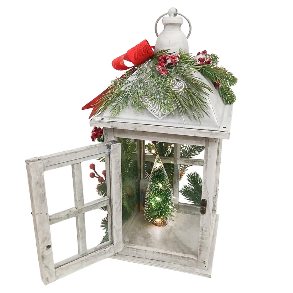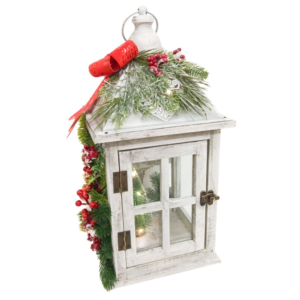 Nádherná vánoční lucerna v tradiční bílé barvě, která dodá Vašemu interiéru sváteční atmosféru v období Vánoc. Tato lucerna je vhodná jako dekorace do interiéru, ale i do exteriéru na terasy nebo ke dveřím.