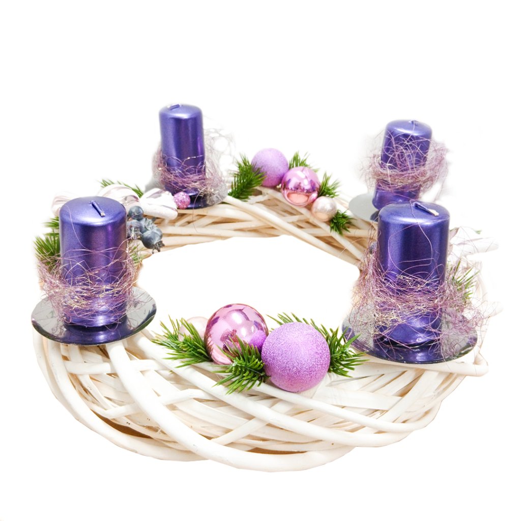 Fialovy adventni svícen na 4 svíčky Fialovy adventni svícen na 4 svíčky