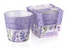 skleněná váza s velikonoční dekorací materiál - sklo, plast, polystyren barva - zelená, fialová, bílá rozměr (d/š/v) : 9 x 9 x 9 cm