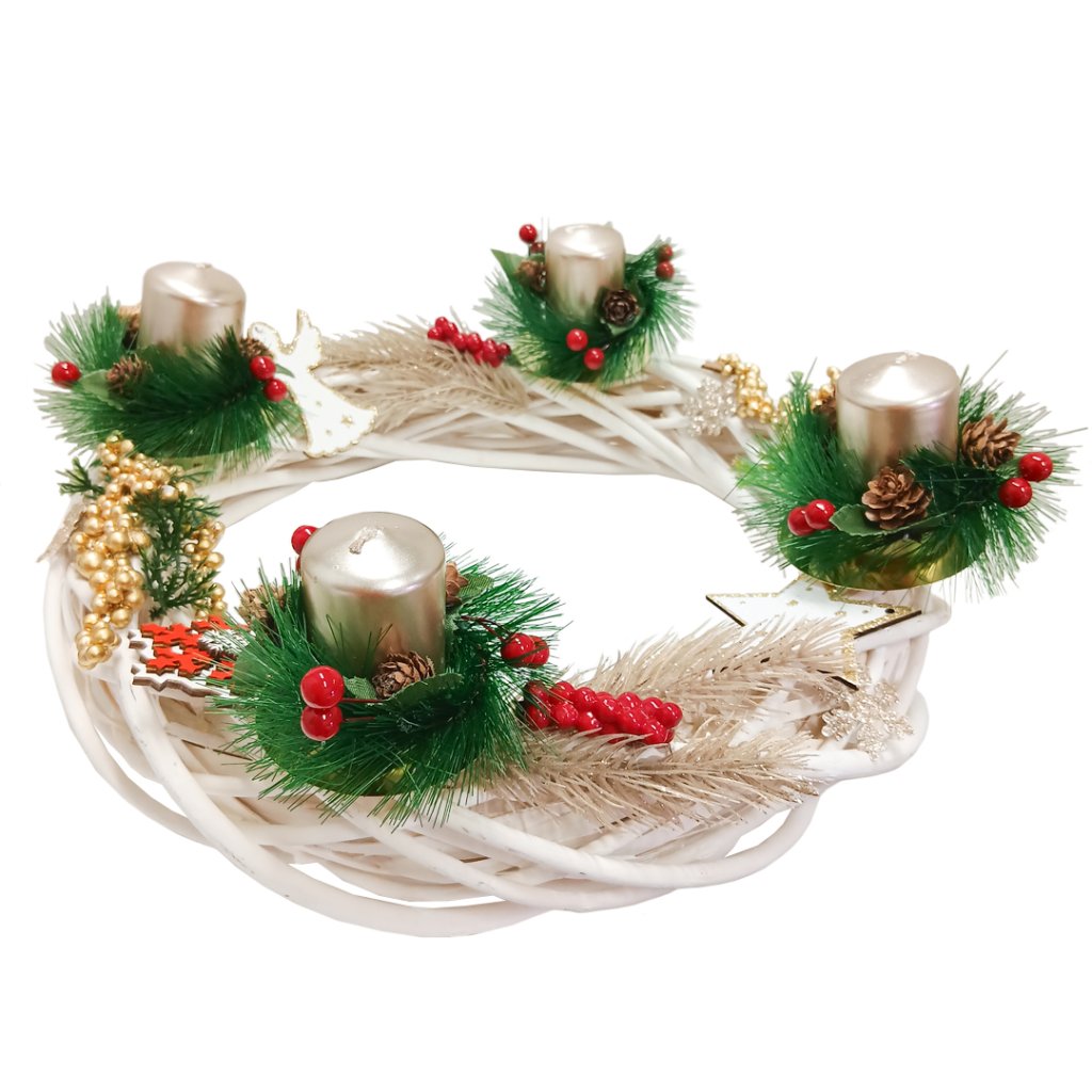 Luxusní adventní věnec se bílými svíčkami Luxusní adventní věnec