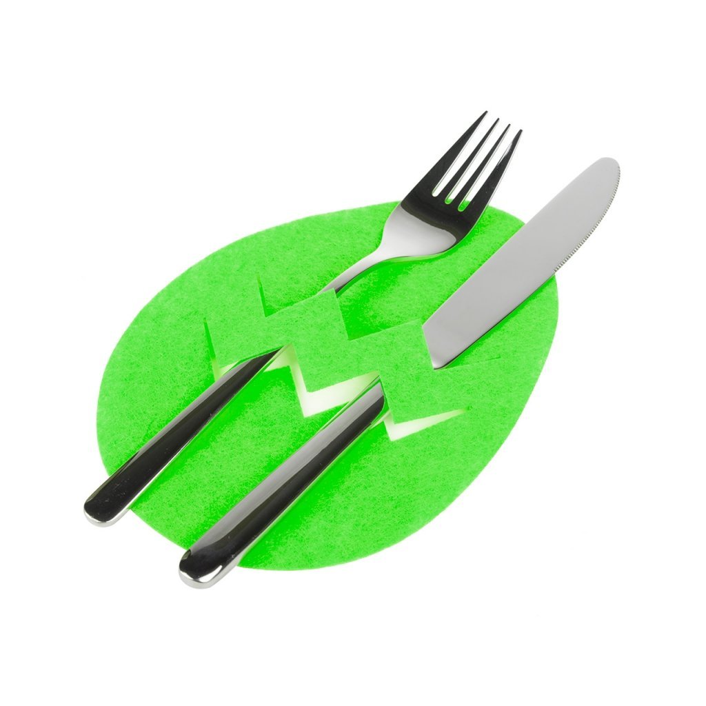 Zelené pouzdro na příbory z měkké plsti o tloušťce 1 mm.