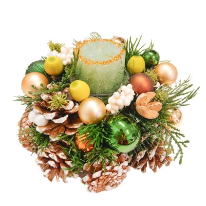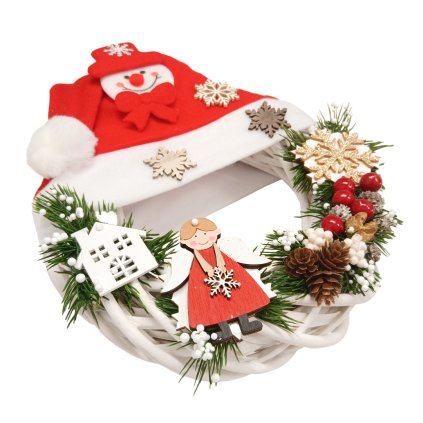 Vánoční věnec 25 cm Věnec lze použít k zavěšení a výzdobě oken a dveří, nebo jako dekorace na stůl. Rozměry: 35 × 15 cm. Barva: bílá/zelená/červená/zlatá.