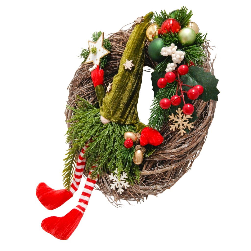 Vánoční věnec se skřítkem