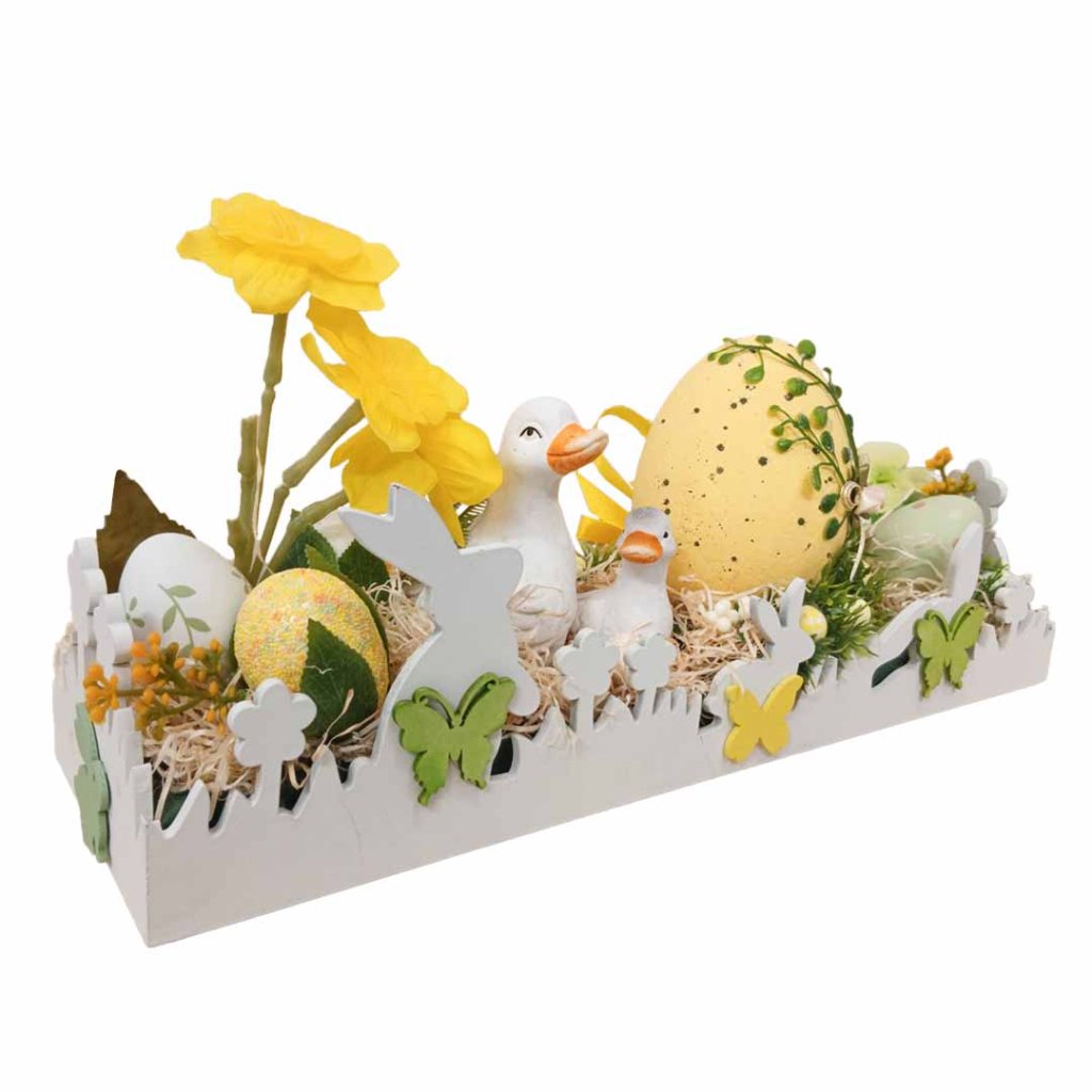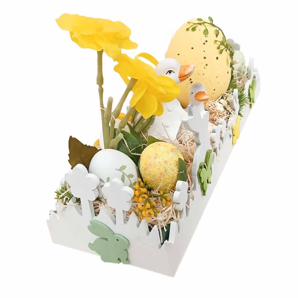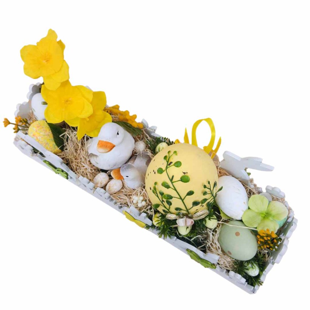 Velikonoční dekorace - ohrádka s kachní a narcisy Velikonoční dekorace - ohrádka s králíky a narcisy