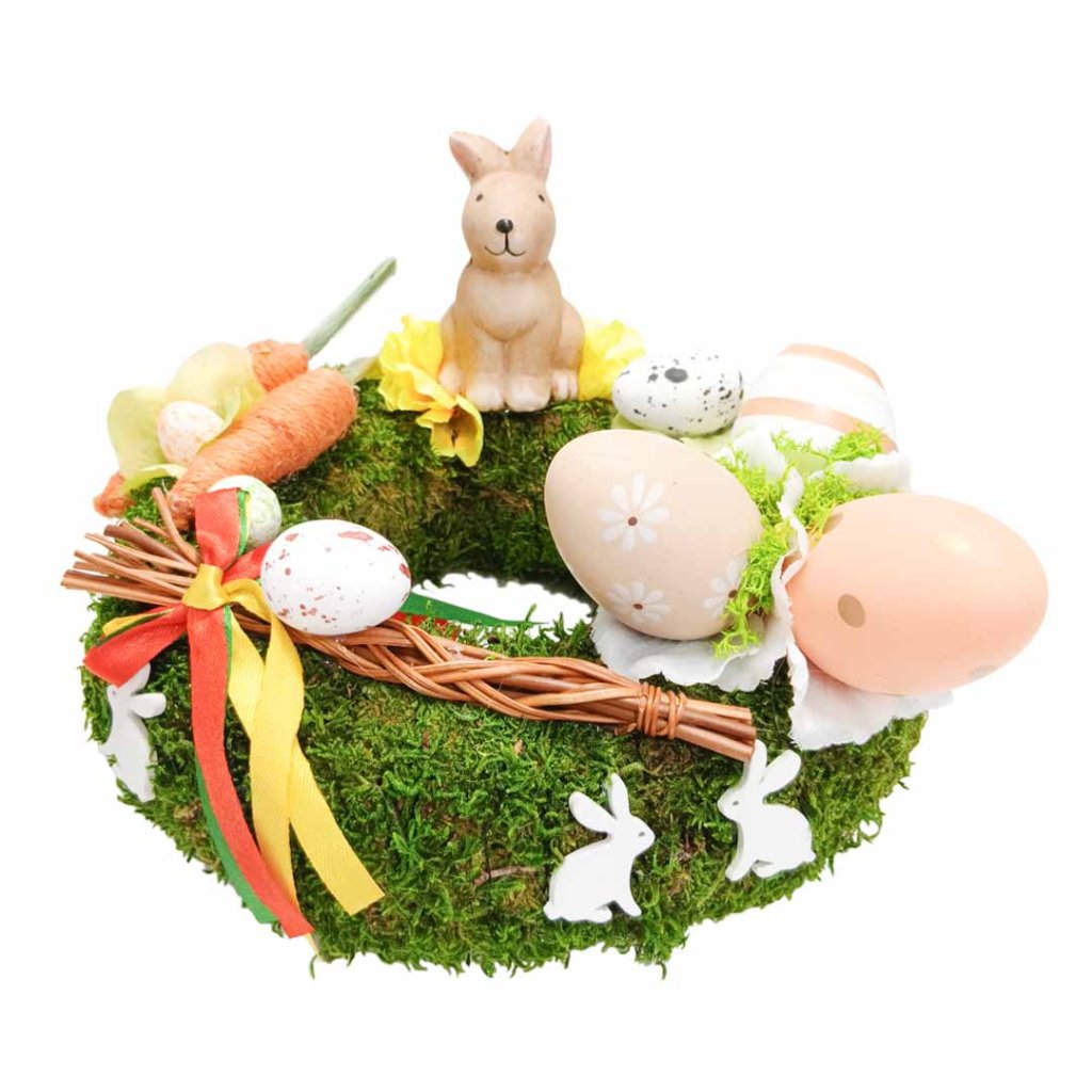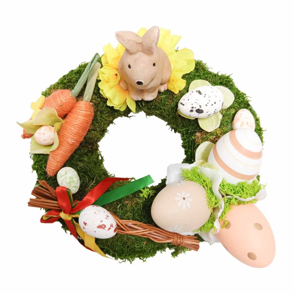 Velikonoční mechový věnec s pomlázkou zdobený mechový věnec Ø 20 cm