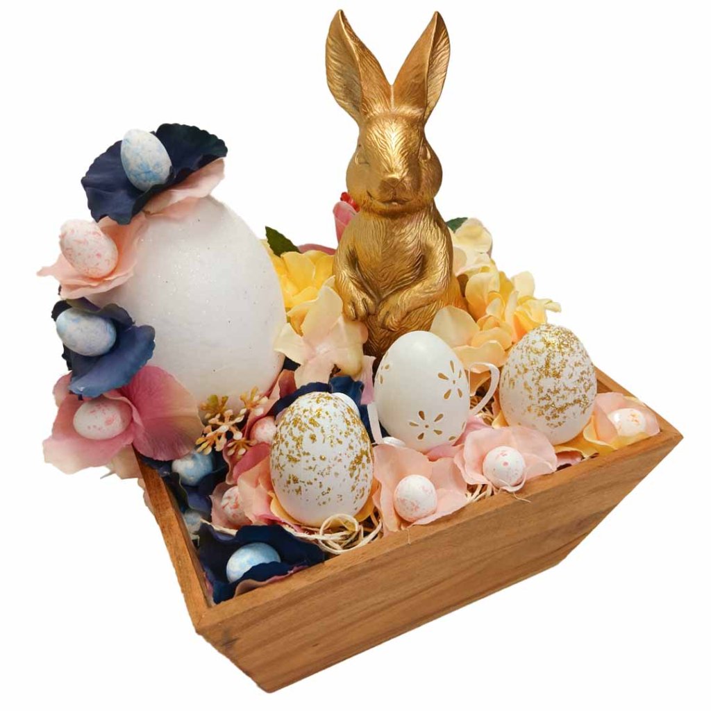 Velikonoční truhlík s králíkem Velikonoční dekorace na stůl 22 x 18 x 26cm