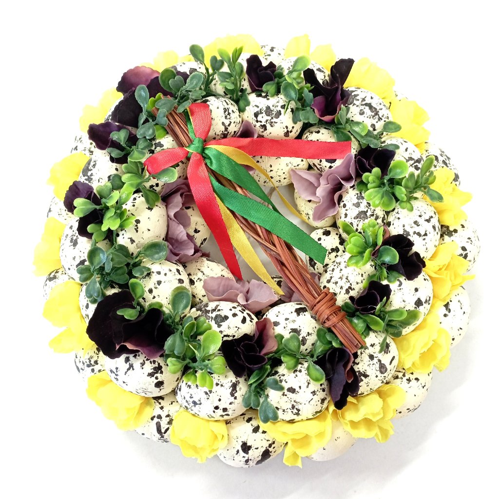 velikonoční dekorace na stůl materiál - dřevo, plast, polystyren barva - bílá, fialová rozměr - (d/š/v) : 37 x 12 x 13 cm