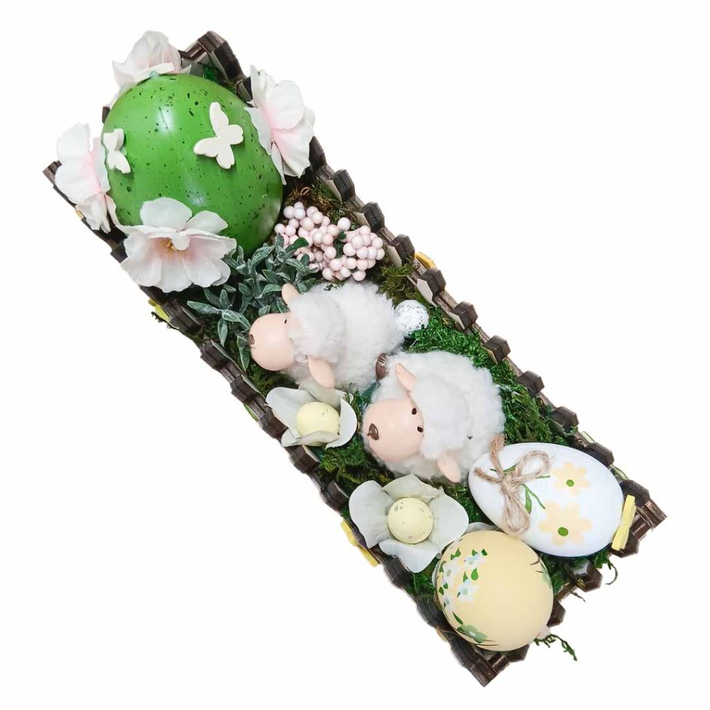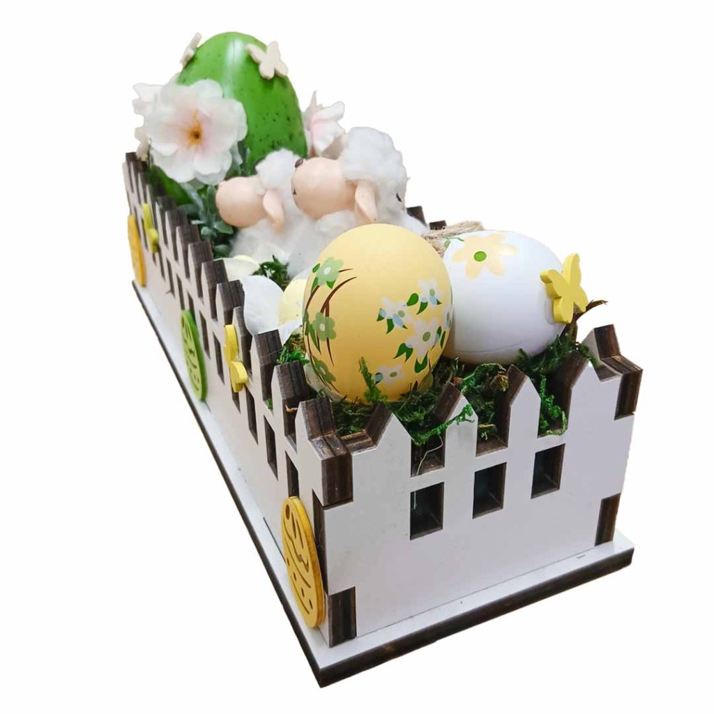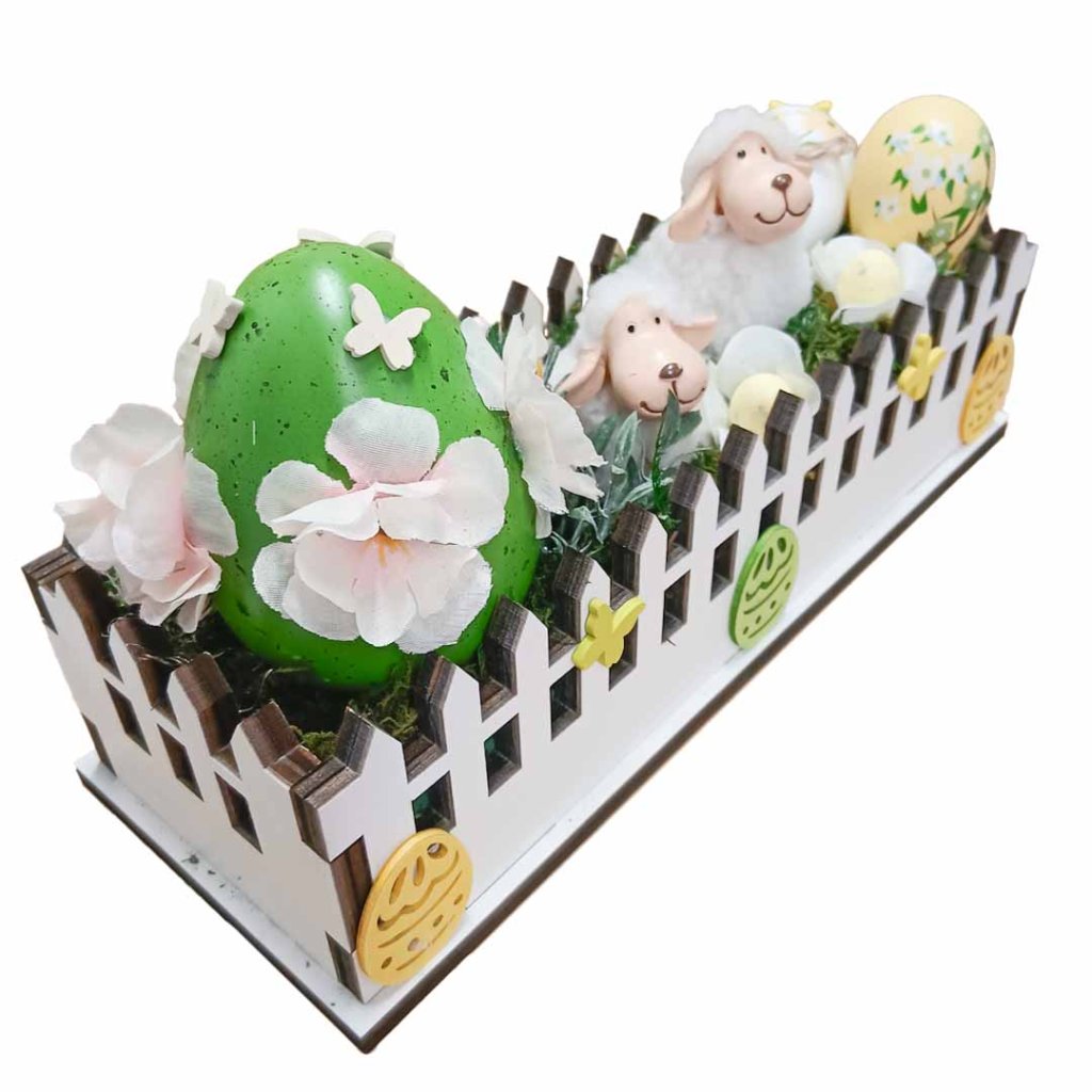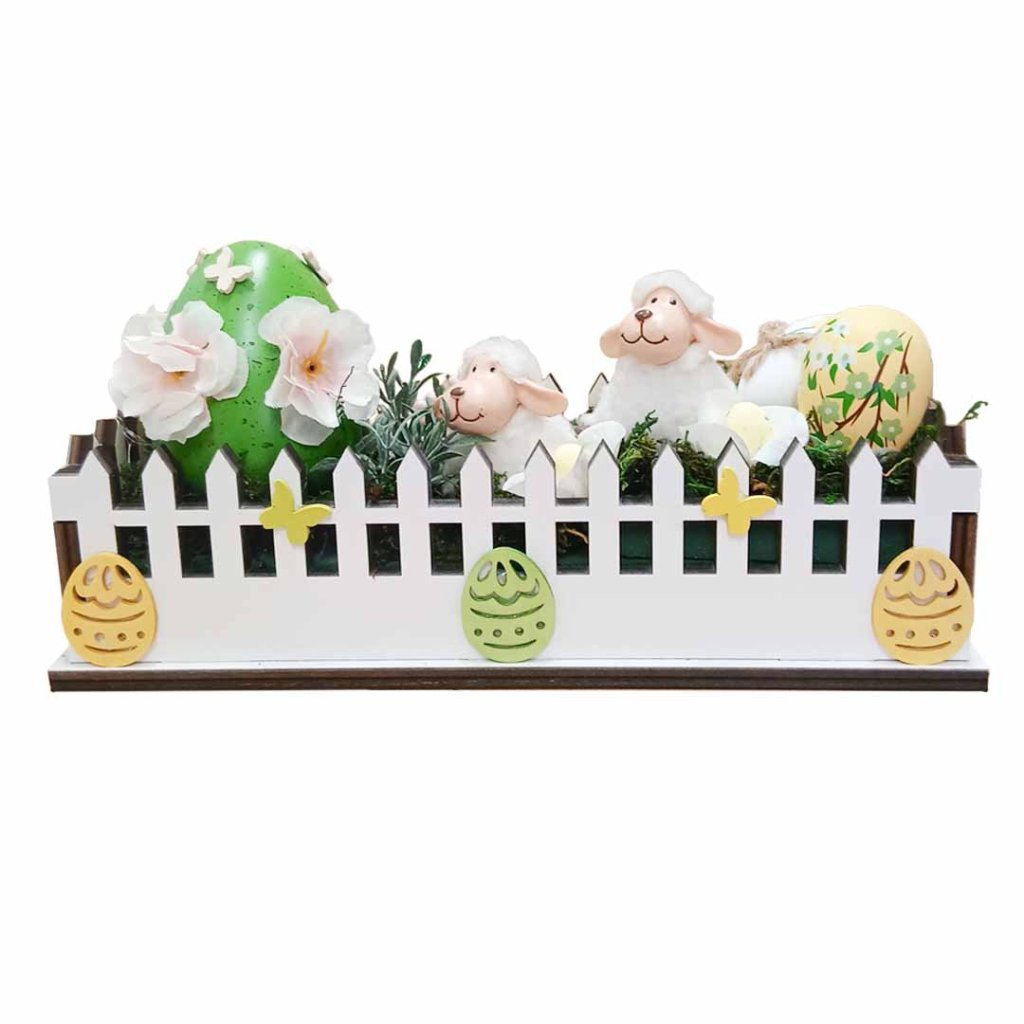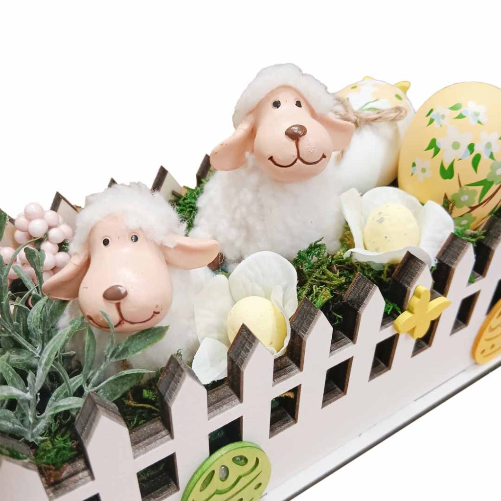 Velikonoční zahrádka - ovečka/h dřevěná zahrádka 30x16x11cm