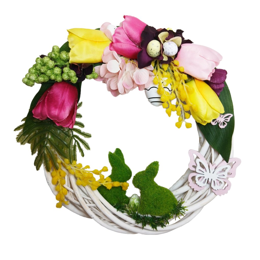 velikonoční věnec Ø 35 cm věnec lze použít k výzdobě oken a dveří nebo jako dekoraci na stůl barva - bílá, zelená, fialová, žlutá
