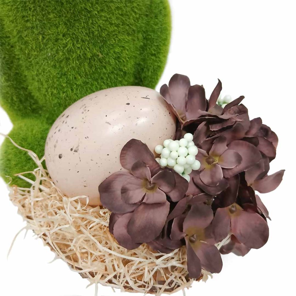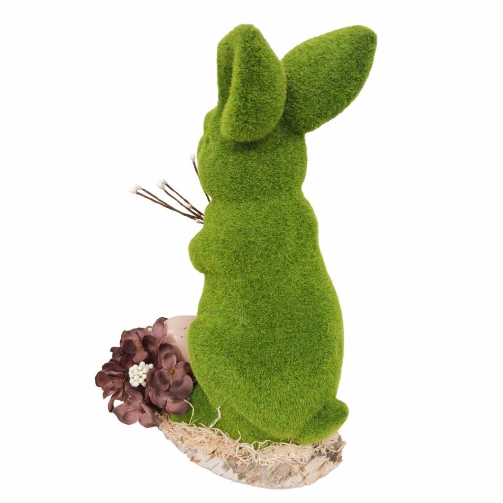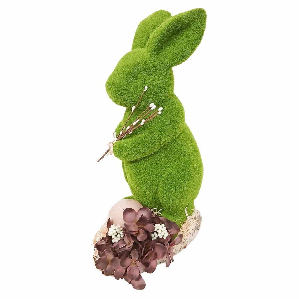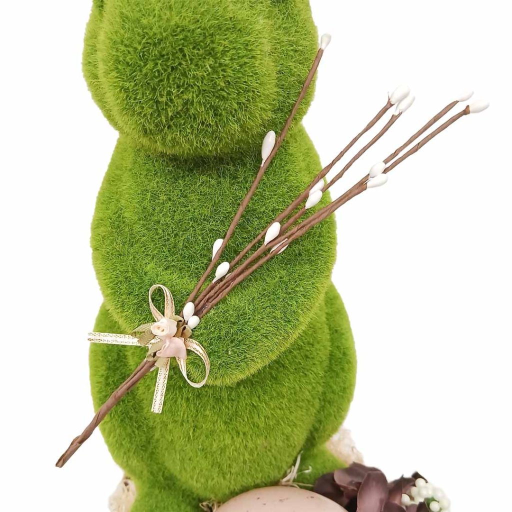 Zelená sametová socha králíka s větvíčkou vrby socha králíka s větvíčkou vrby 40cm