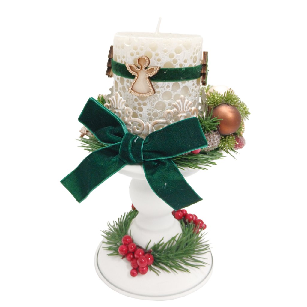 Zeleno bílý adventní svícen na stůl Zeleno bílý adventní svícen